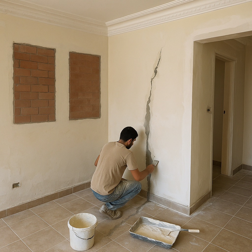 ترميم وصيانة شقة أرضية: تقفيل شباكين، ترميم شروخ، ودهان وقص جبس