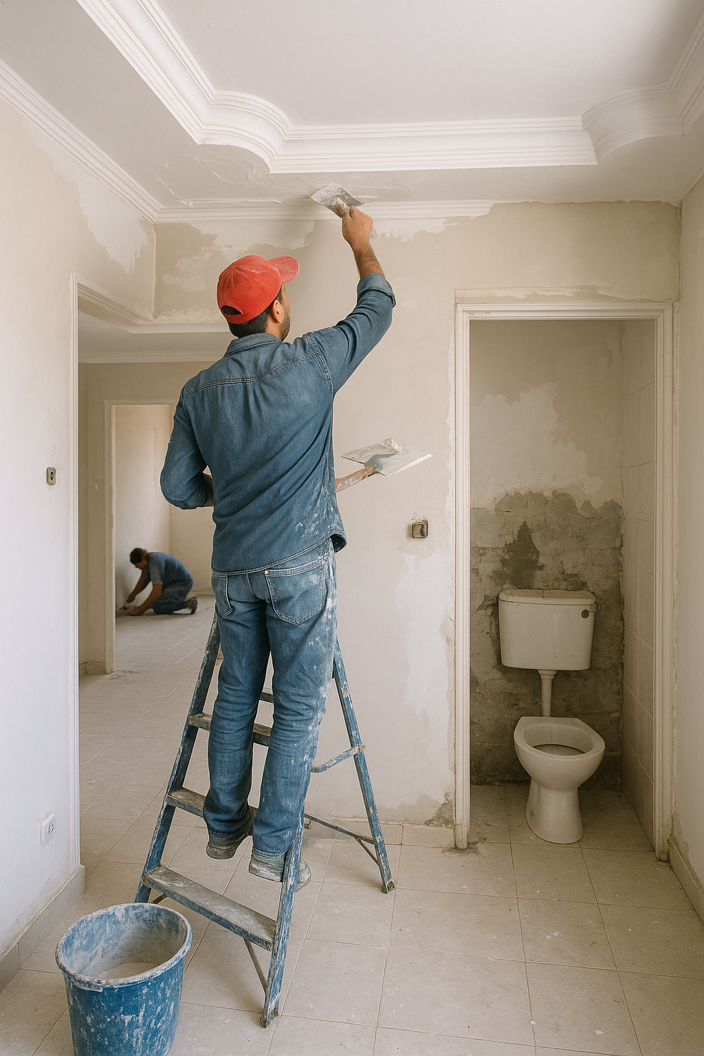 تشطيب شقة: تغيير جبس وبويا وصيانة دورات المياه
