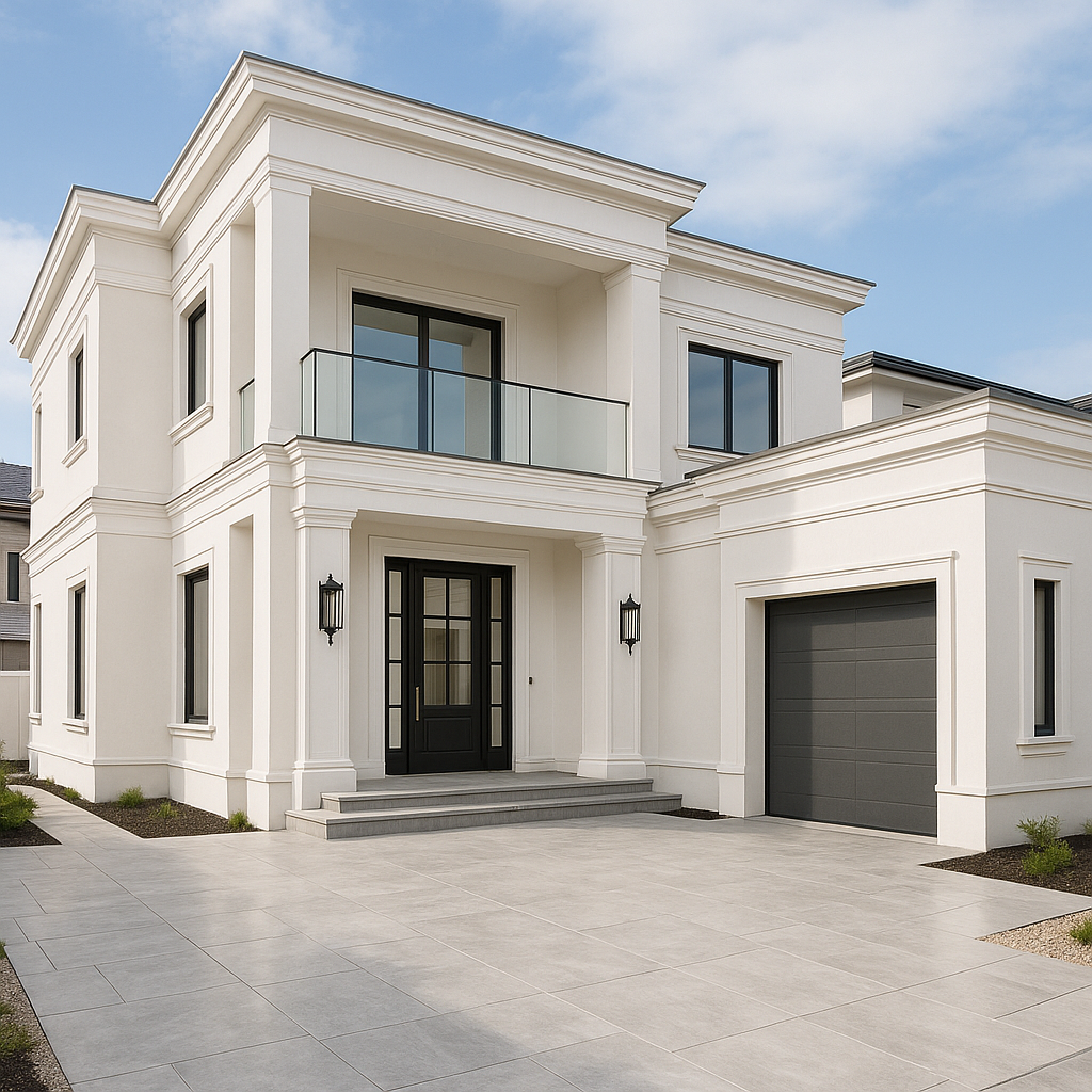 – تشطيبات خارجية باستخدام الحجر الطبيعي والتفاصيل الحديثة.