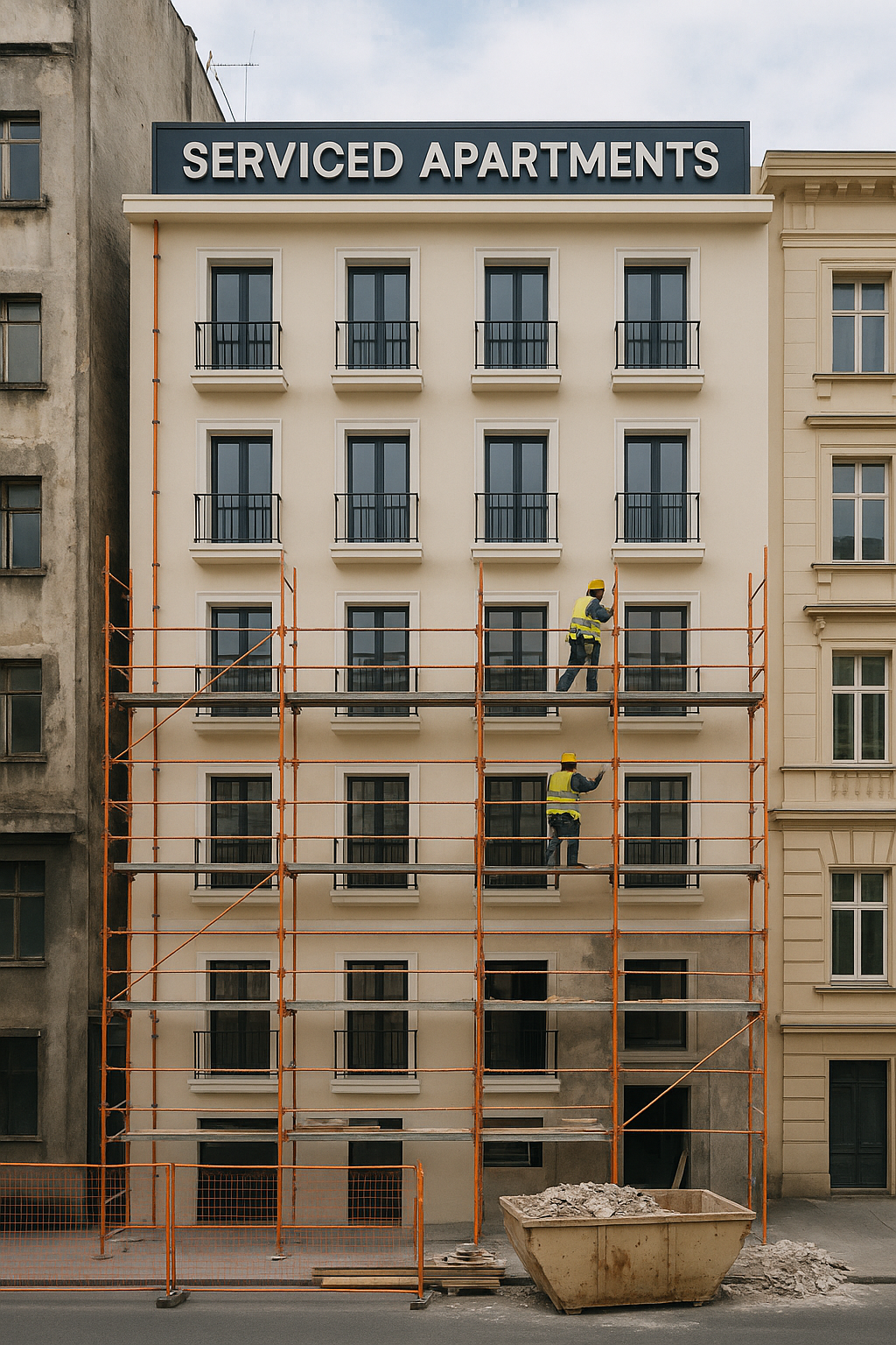 وصف المشروع: نقوم بتصنيف وتجهيز عمارة مكونة من ستة أدوار في المنطقة الغربية بالمملكة العربية السعودية لاستخراج رخصة شقق مخدومة. يشمل العمل تطوير البنية التحتية والترميم لضمان الامتثال لمعايير الرخصة المطلوبة.