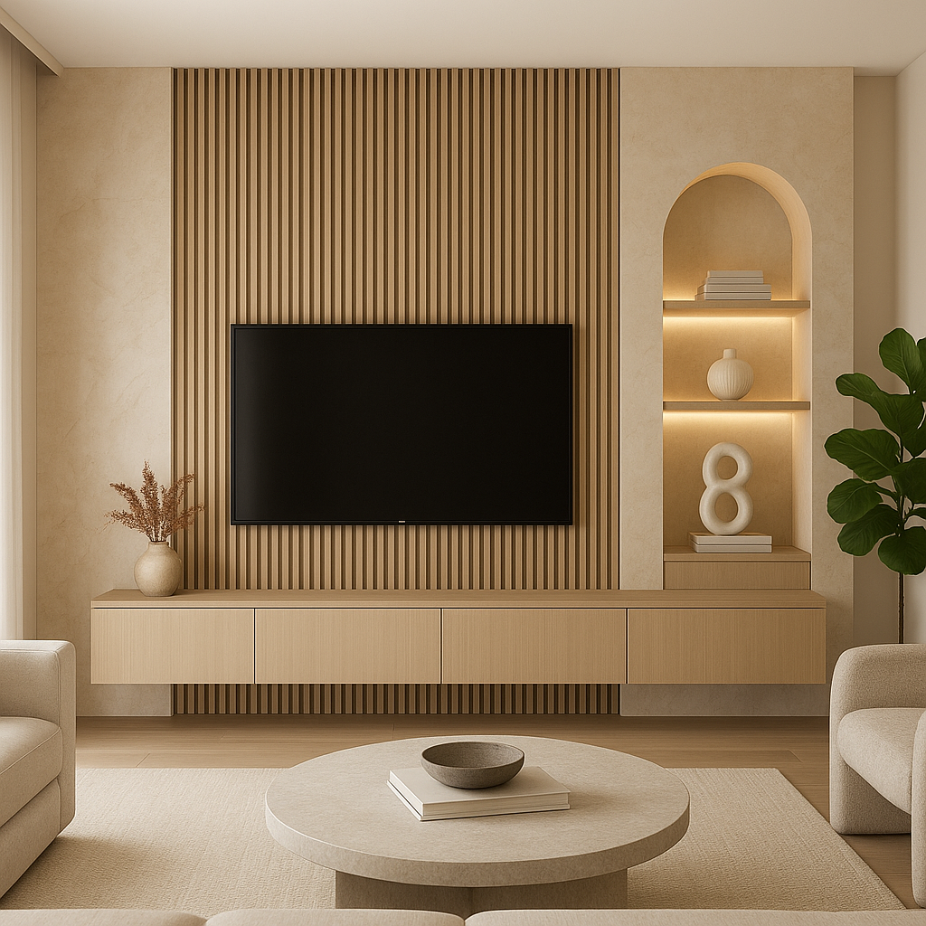 “ديكور مميز لجدار تلفزيون بمساحة ٤م × ٣م لتجديد أجواء المنزل”