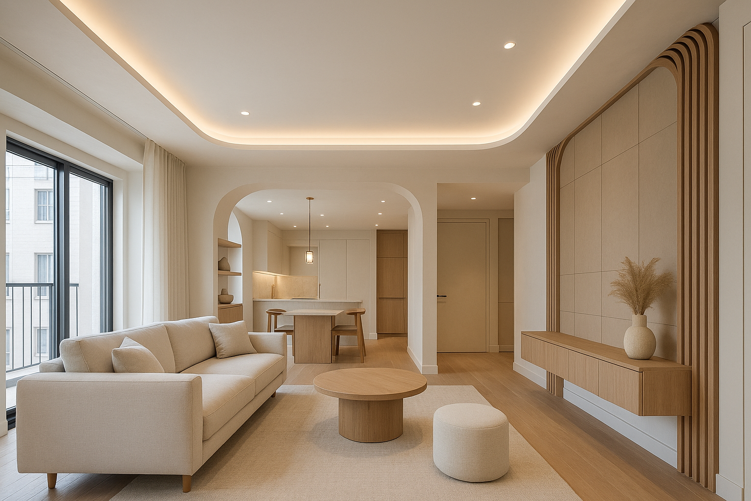 تشطيبات داخلية وديكورات مخصصة لشقة حديثة البناء.