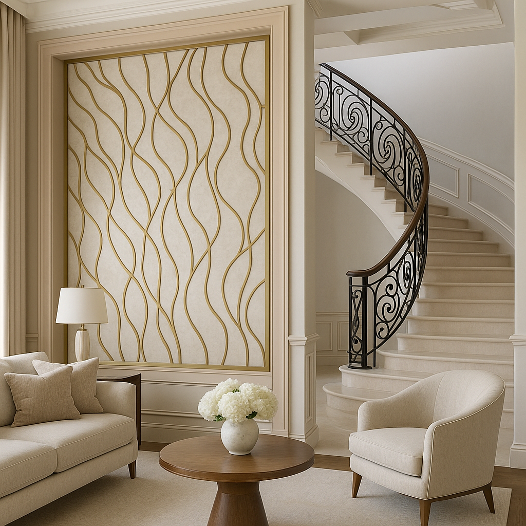 فصل الدرج عن الصالة في فيلا: تصميم وتنفيذ ديكور مخصص.