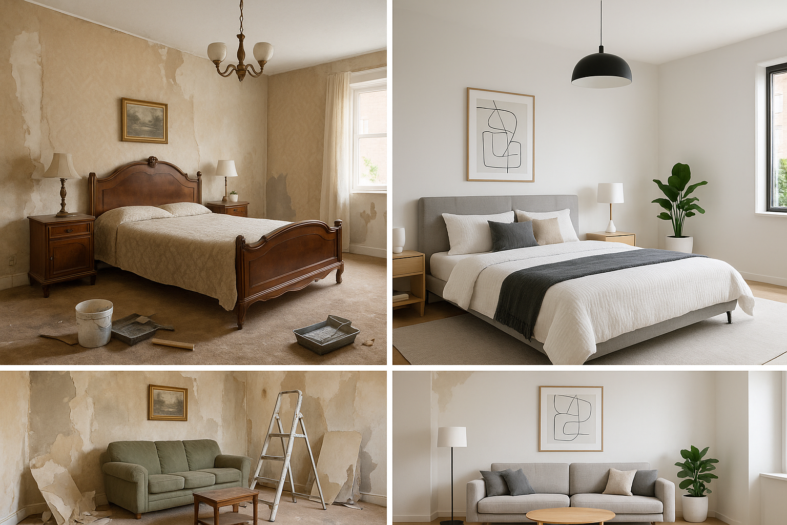 مشروع تجديد ديكورات لغرفة النوم وغرفة الجلوس بأسلوب عصري وأنيق