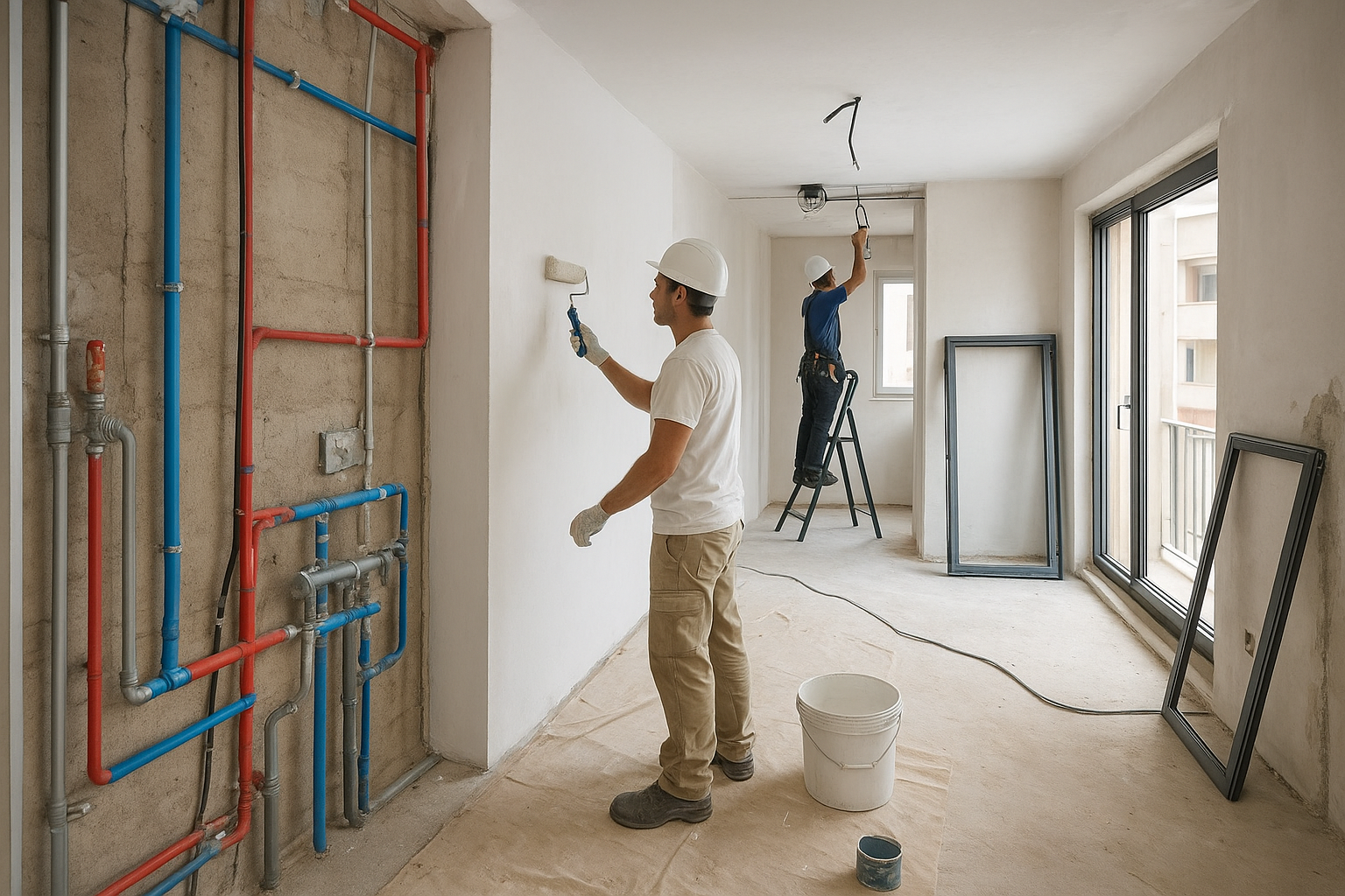مشروع تجديد كامل لشقة سكنية: سباكة، صبغ، كهرباء، وألمنيوم