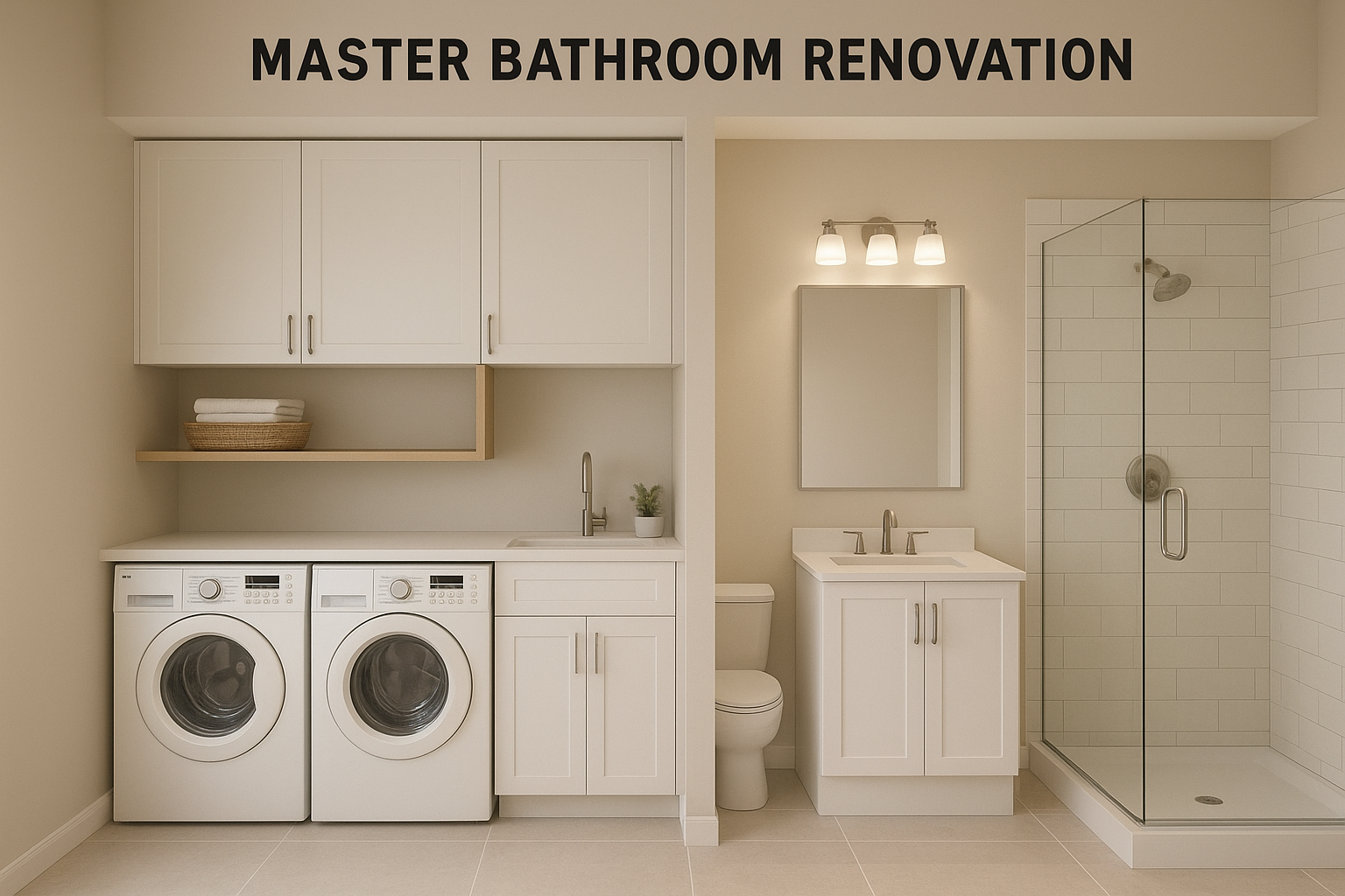 مشروع تعديل غرفة ماستر: تحويل حمام إلى غرفة غسيل وإنشاء حمام جديد بمدخل مختلف