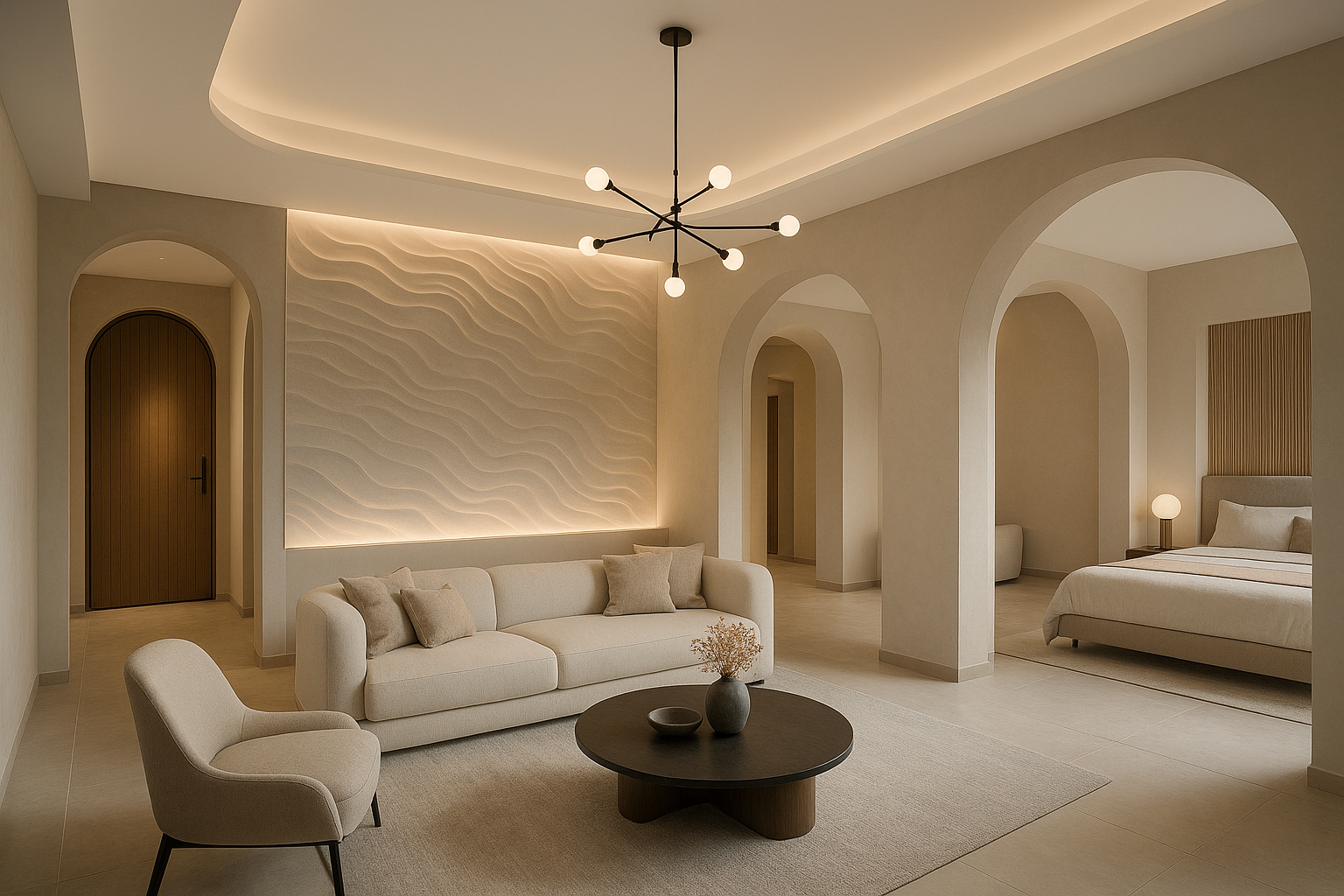 ديكور داخلي مبتكر لمجلس ومدخل وصالة وغرفة ماستر
