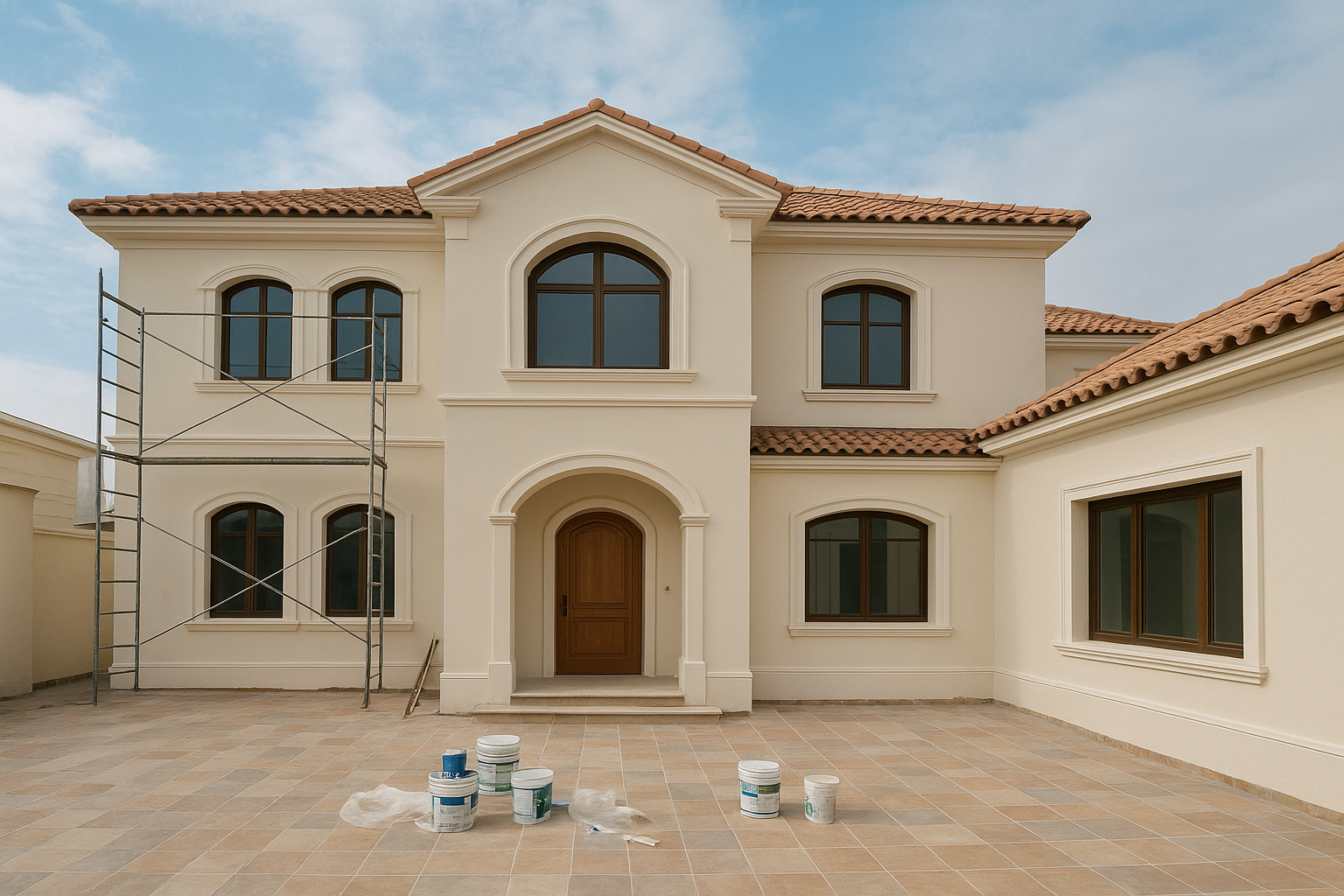 تجديد وترميم فيلا بمساحة ٩٠٠ متر مربع ‌-‌ واجهات، بلاط، بويه، شبابيك وأبواب